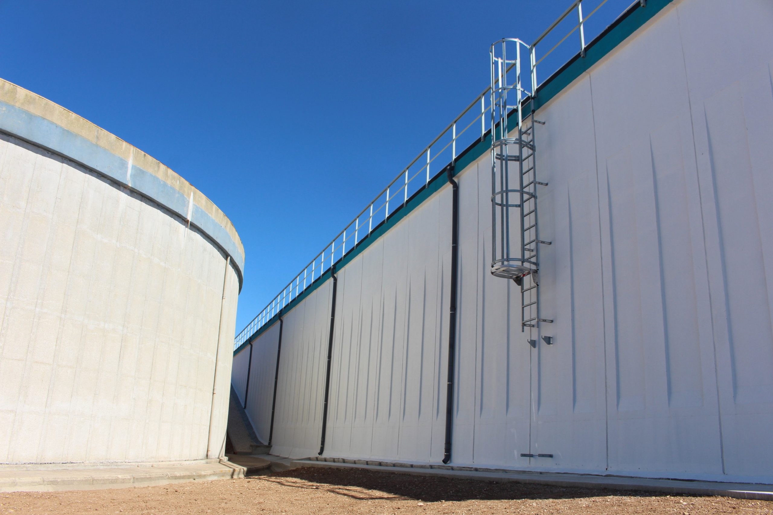 Face aos condicionalismos impostos pela área de terreno disponível, foi projetada uma célula semienterrada, constituída por componentes pré-fabricados, com a cobertura em betão e os respetivos elementos suportados nas paredes do depósito e num pórtico interior.