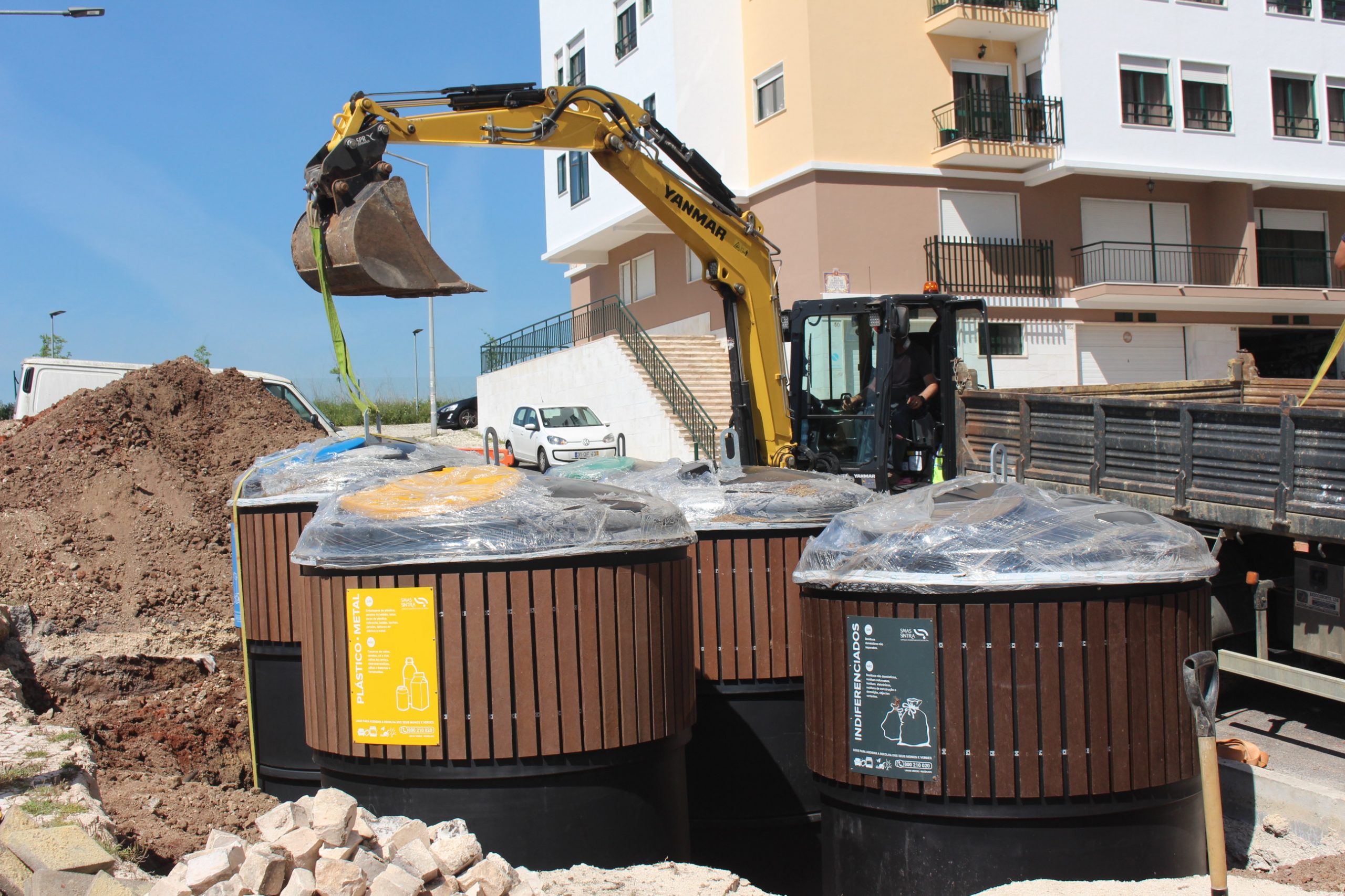 Os SMAS de Sintra estão ainda a renovar a contentorização na área do Cacém Polis, neste caso numa empreitada com recurso a meios próprios dos serviços (administração direta), que abrange a instalação de 52 contentores enterrados, divididos por 11 pontos de deposição, em substituição de equipamentos antigos e com frequentes problemas de operacionalidade, alguns dos quais já se encontravam mesmo desativados (os chamados TNL).