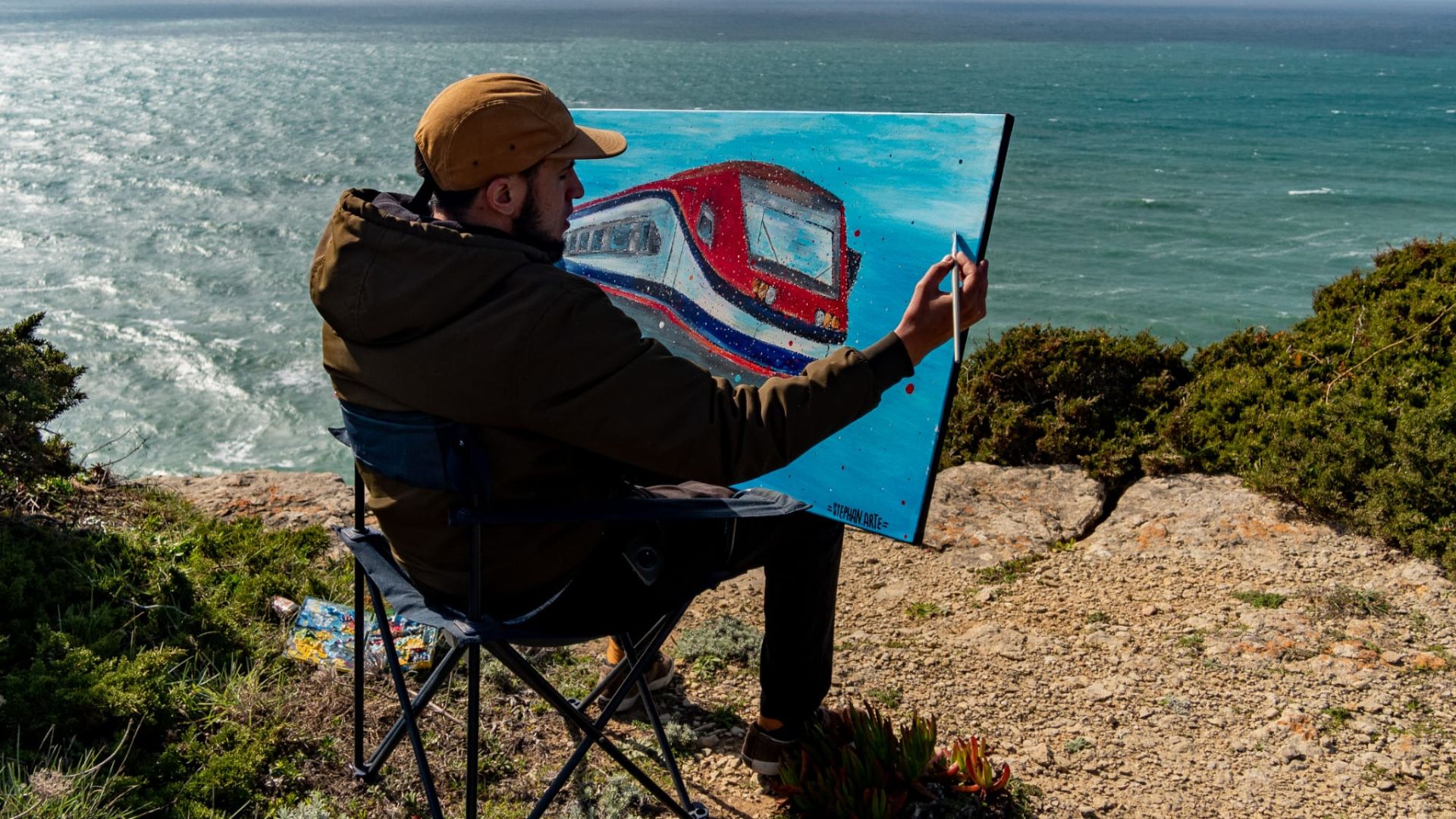 Nascido em Rio de Mouro, Stephan.Arte estabeleceu, desde cedo, uma estreita ligação com o transporte ferroviário, o único meio de transporte que utilizava para se movimentar. Com 14 anos, em 1998, concebeu as suas primeiras obras em graffiti, num percurso criativo que, hoje em dia, assume como atividade principal, através da realização de diversos trabalhos para empresas privadas e entidades públicas. À procura de inspiração, viajou pela Europa e aprofundou a respetiva veia criativa. Nos últimos tempos, tem explorado um acontecimento ainda desconhecido para muitos, a “Operação Recife”, que, entre 2001 e 2010, consistiu em inutilizar 2.500 carruagens, que foram “despidas” e estrategicamente descartadas no Oceano Atlântico, com o objetivo de restaurar os recifes de corais que acolhem inúmeras espécies marítimas. Estas carruagens funcionam, autenticamente, como maternidade e abrigo para que algumas espécies ali possam nascer e prevalecer. Nas suas obras, Stephan.Arte deixa evidente a ironia em relação aos facto de vários pedaços de lixo industrial se terem transformado num gesto em prol da sustentabilidade do planeta.