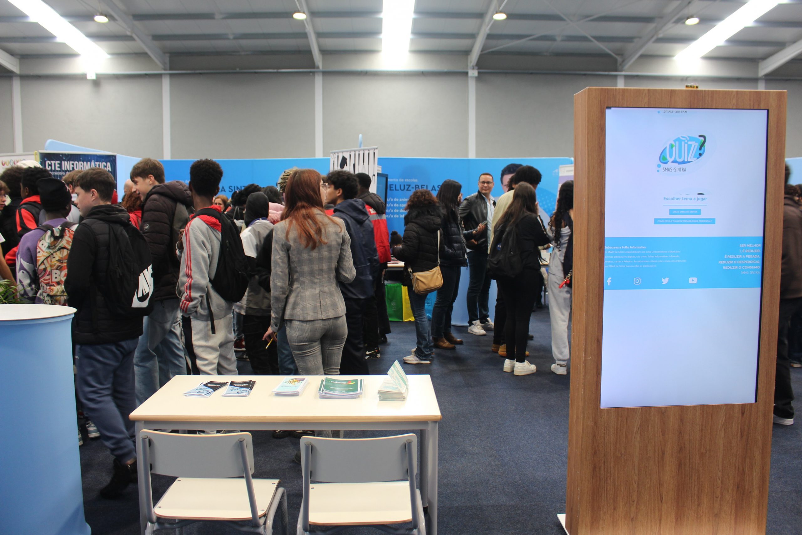 Ao longo dos três dias, e para além da divulgação da disponibilidade para a realização de estágios curriculares, os SMAS de Sintra estão a divulgar alguns projetos ambientais, como o Sistema de Recolha Seletiva de Biorresíduos, o Projeto de Valorização e Reciclagem de Têxteis, “Compostagem é Reciclar e Reutilizar-Ser Melhor pelo Ambiente!” e “De Patas Dadas com a Sustentabilidade”, sem esquecer a vertente da educação e sensibilização ambiental. O espaço dos SMAS de Sintra conta com um quizz em formato digital, com questões relativas às suas três atribuições (abastecimento de água, drenagem de águas residuais e recolha de resíduos urbanos), procurando sensibilizar os jovens e outros agentes educativos para as questões ambientais.