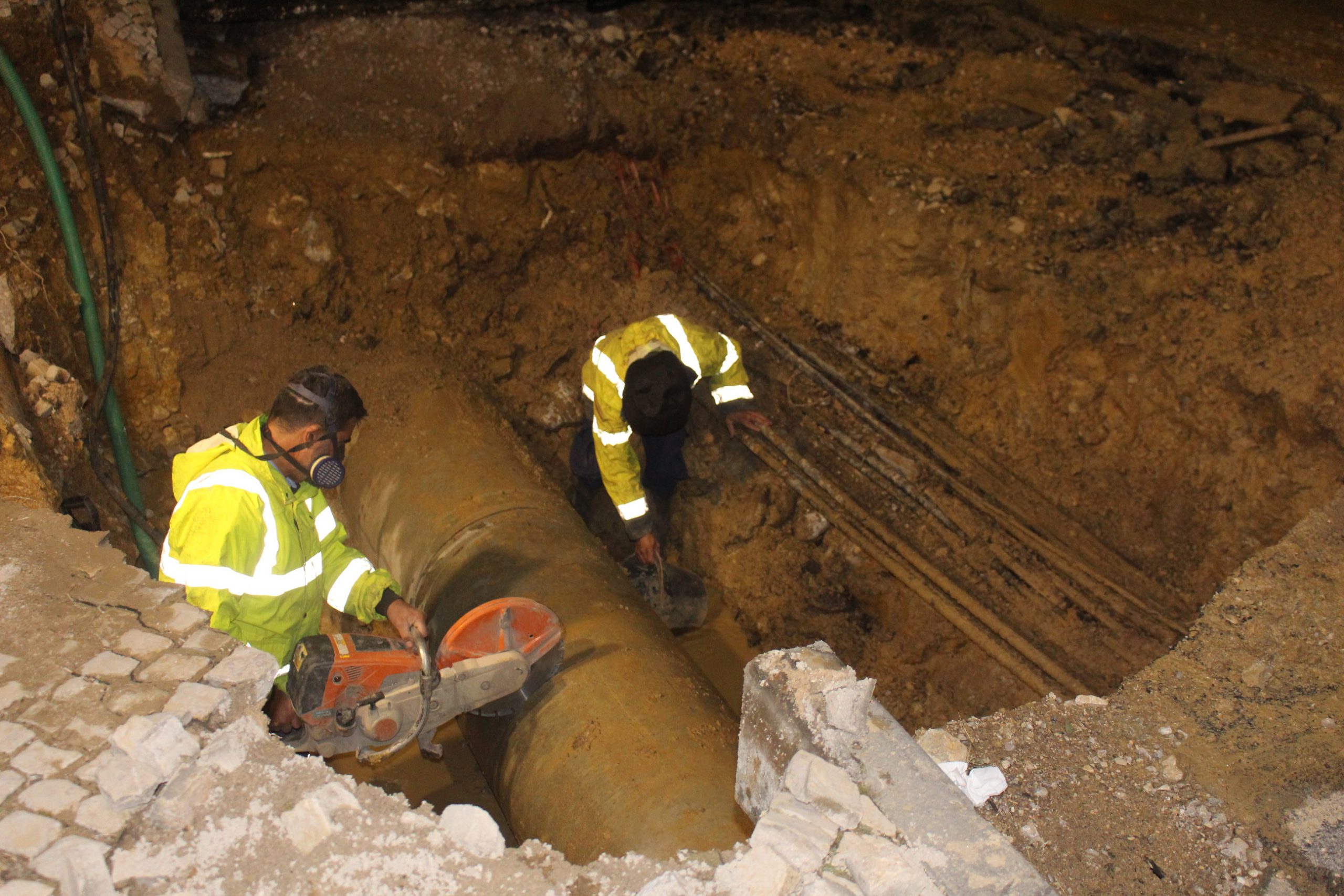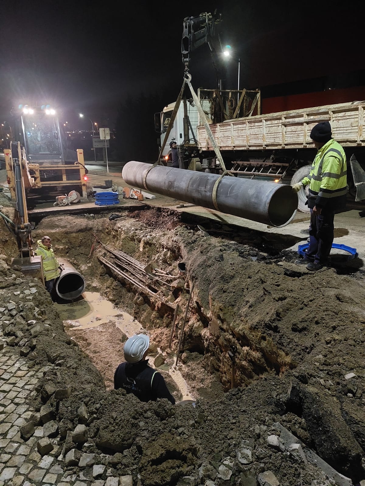 Após a escavação de vala de significativa dimensão, para permitir a viabilização da intervenção e a segurança de todos os intervenientes diretos, os trabalhos consistiram na substituição integral da tubagem onde se verificou a rotura, com recurso a material de maior resistência e durabilidade (Ferro Fundido Dúctil), o que ocorreu já durante a madrugada, com o trânsito a ser reaberto parcialmente na manhã de domingo. Os procedimentos de enchimento da conduta e as manobras de reposição do sistema de abastecimento foram terminados por volta do meio-dia.