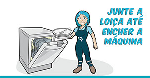 Lave a loiça, apenas quando tiver a máquina cheia. Consuma menos água e energia. O ambiente agradece.