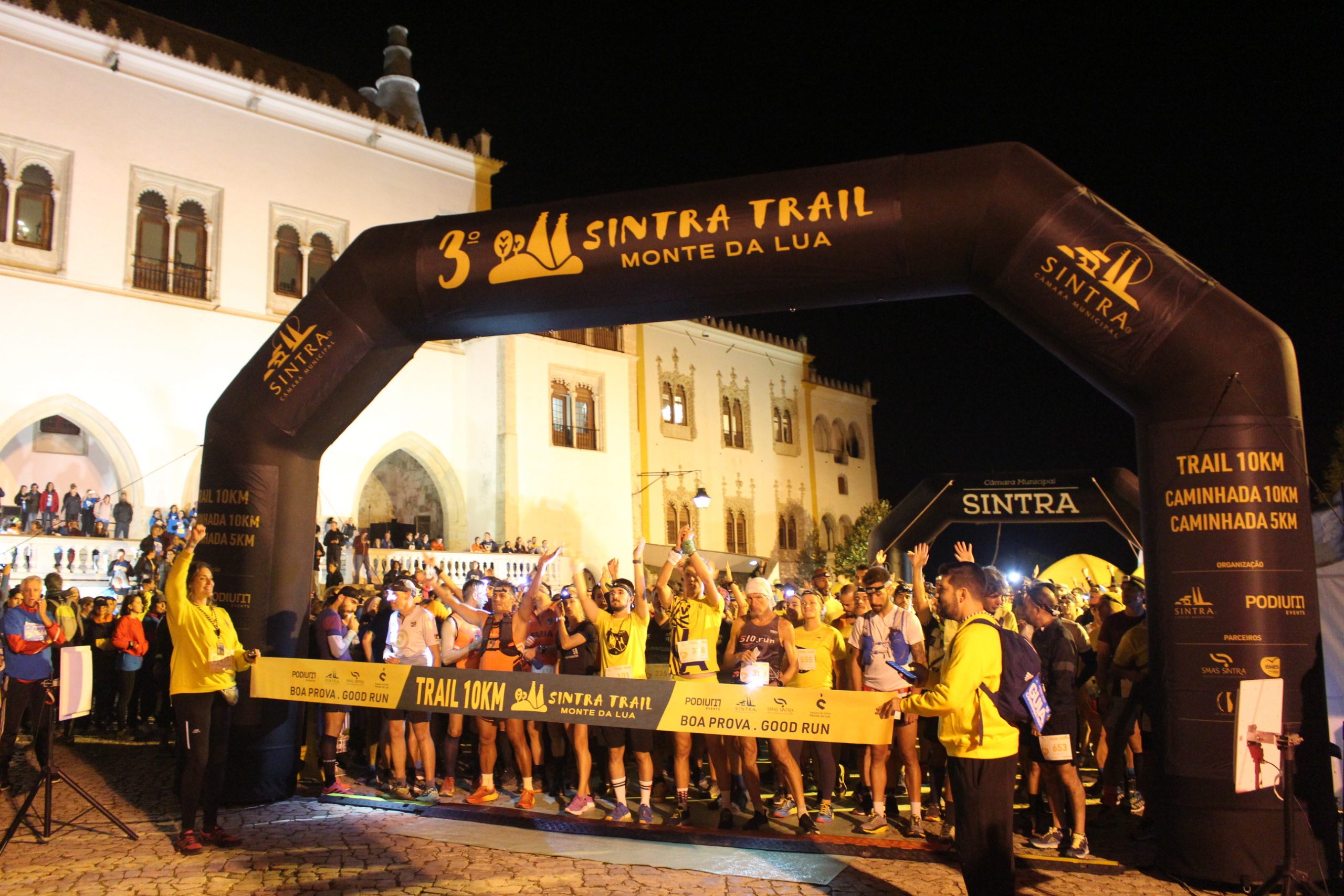 Com cerca de 2.000 inscrições, das quais 600 no trail (com carácter competitivo), nem a chuva que voltou a fazer-se sentir na Vila de Sintra, na noite deste sábado, dia 21 de outubro, afastou os participantes de mais uma edição, a 3.ª, do Sintra Trail Monte da Lua, que percorreu ruas, vielas, escadas, túneis, monumentos, jardins, miradouros, pontes e trilhos da Vila Património Mundial e da Serra de Sintra e que, este ano, pela primeira vez, incluiu a passagem pelo local enigmático do Poço Iniciático nos jardins da Quinta da Regaleira.