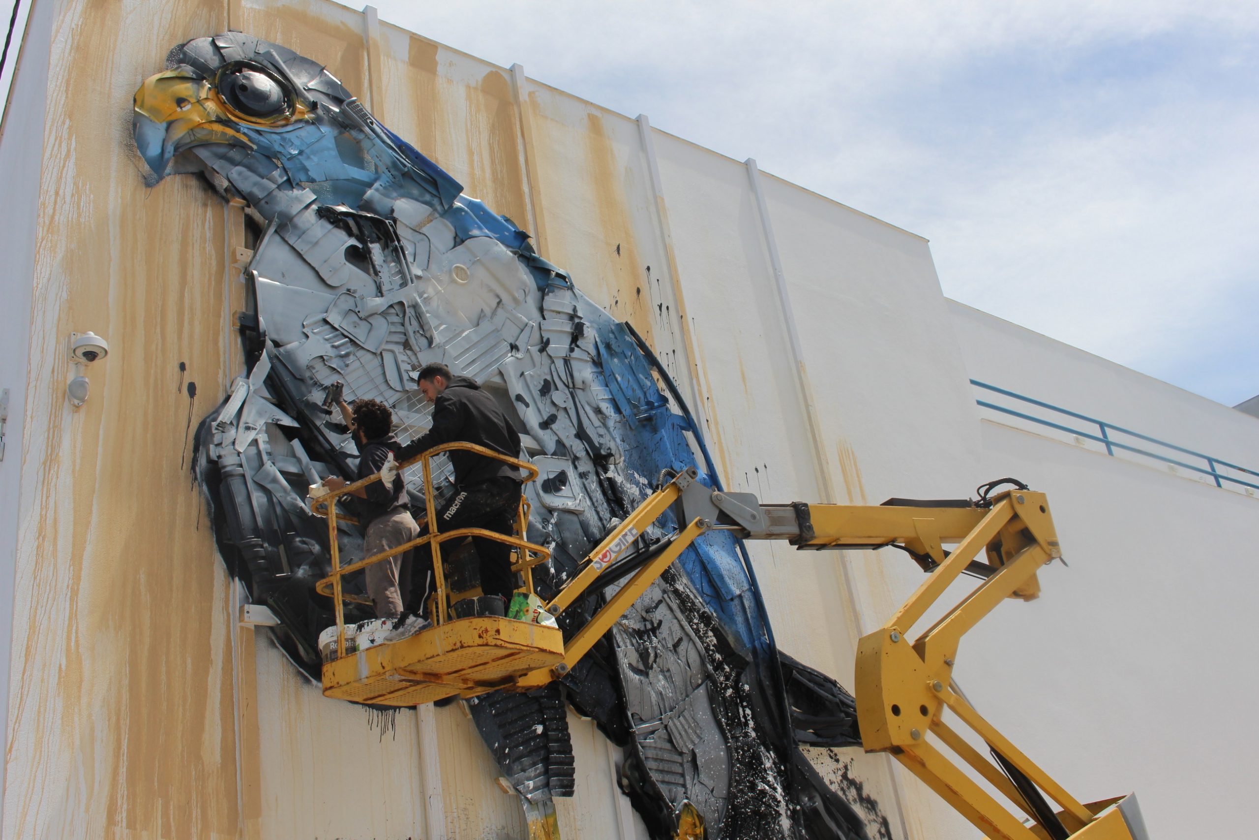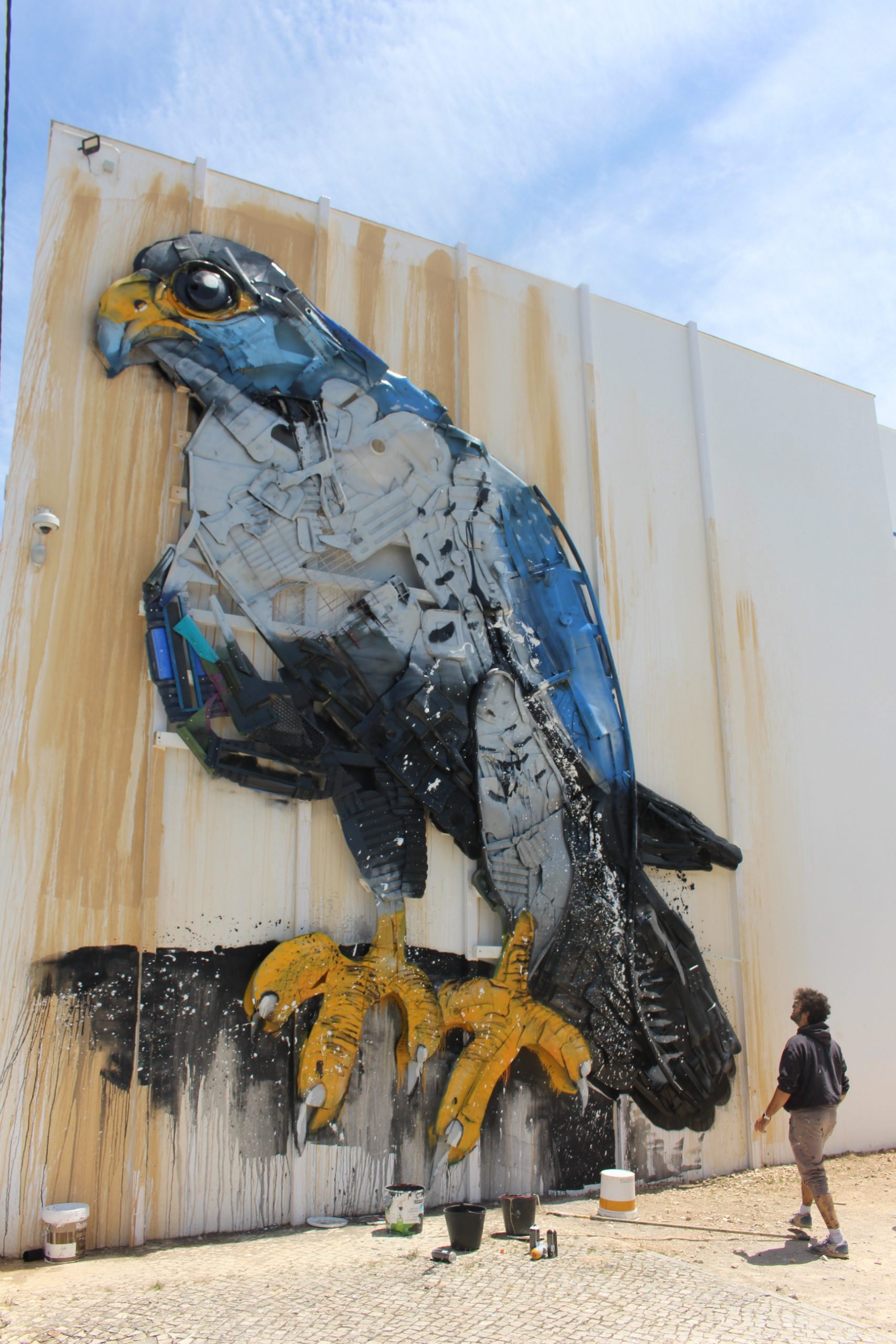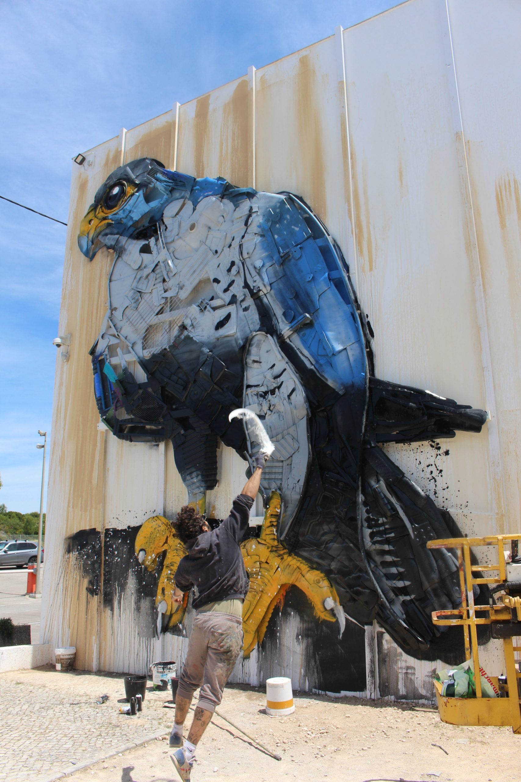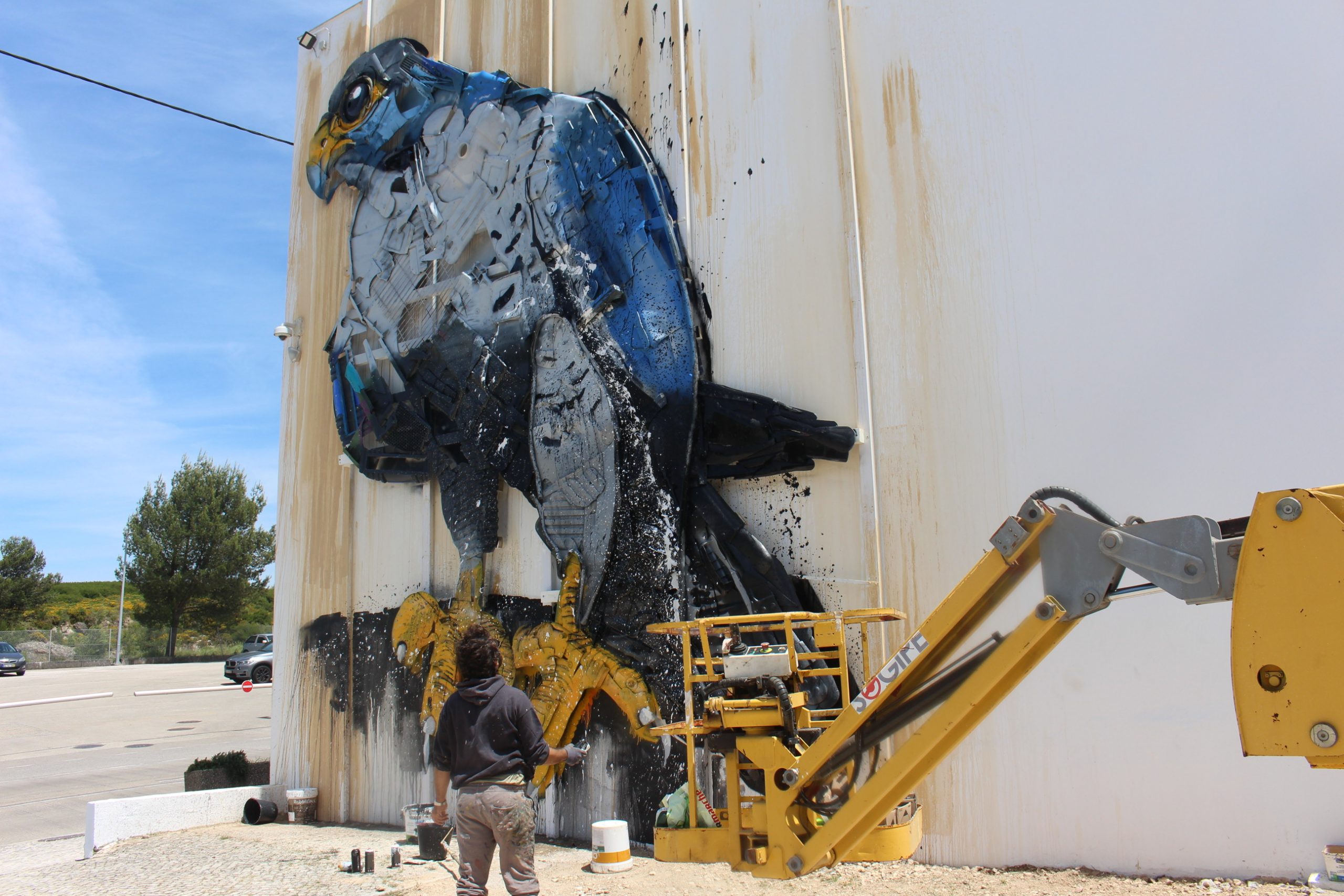 Afirmando-se como a marca de referência no desenvolvimento sustentável do Município de Sintra, os SMAS lançaram o desafio a Bordalo II para que criasse uma obra da série “Big Trash Animals”, inspirada na fauna do Parque Natural de Sintra-Cascais (PNSC). Considerado o animal mais rápido do mundo (podendo atingir velocidades de 320 km/h), o falcão-peregrino apresenta um estatuto de conservação classificado como vulnerável, sendo ameaçado pela ocupação urbana da zona litoral, onde nidifica nas paredes rochosas. Residente na área do PNSC, o falcão-peregrino ocupa arribas costeiras, áreas escarpadas do interior e zonas abertas com abundância de presas, alimentando-se de aves que captura em pleno voo.