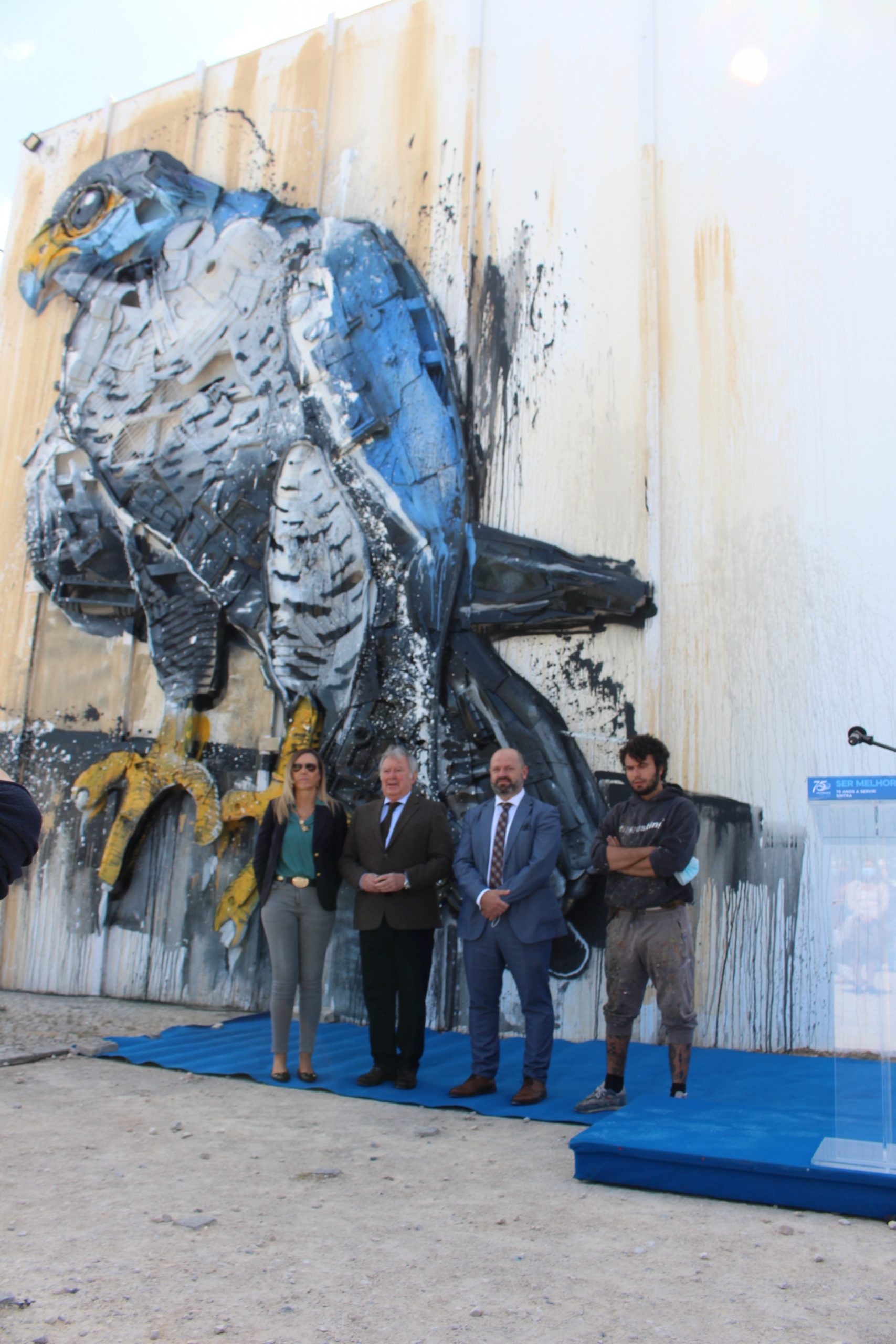 Na véspera do Dia Internacional da Biodiversidade (22 de maio), os Serviços Municipalizados de Água e Saneamento de Sintra (SMAS de Sintra) inauguraram esta sexta-feira, dia 21 de maio, uma criação artística de Bordalo II. A inauguração da obra de arte, que retrata um falcão-peregrino, insere-se nas comemorações do 75.º aniversário dos SMAS de Sintra.