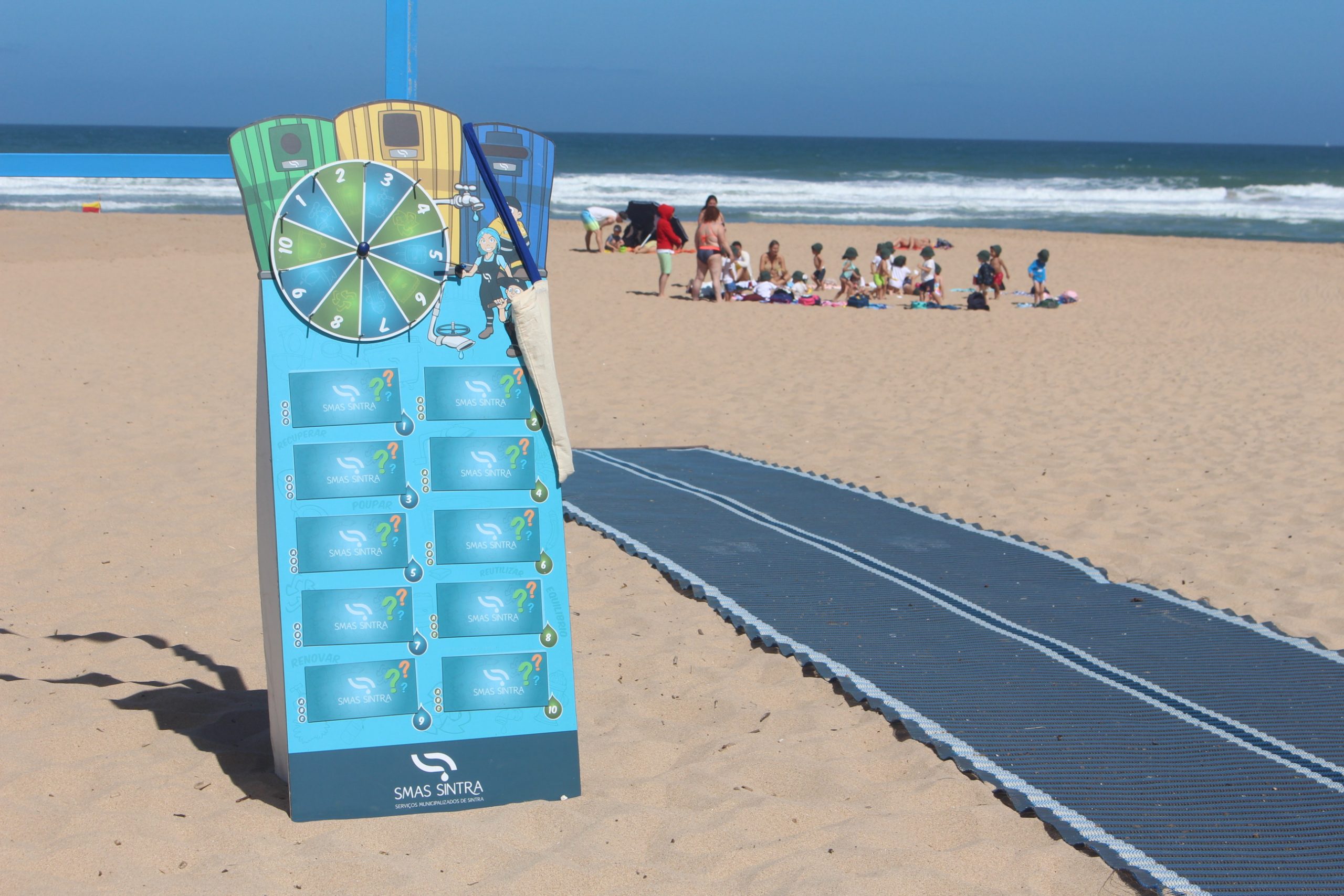 “Um dia na Praia” visa promover, por um lado, a qualidade da água distribuída na rede de abastecimento do concelho de Sintra. “Beba água da torneira” é o mote para esta ação, que inclui a distribuição de água da rede pública e de água aromatizada. Os mais pequenos poderão ainda, ao longo do dia, ter acesso a jogos, como “SMAS e o Ambiente” e “Compostagem”, que vão abordar temáticas como o ciclo urbano da água, o tratamento das águas residuais (funcionamento de ETAR) e a correta separação dos resíduos.