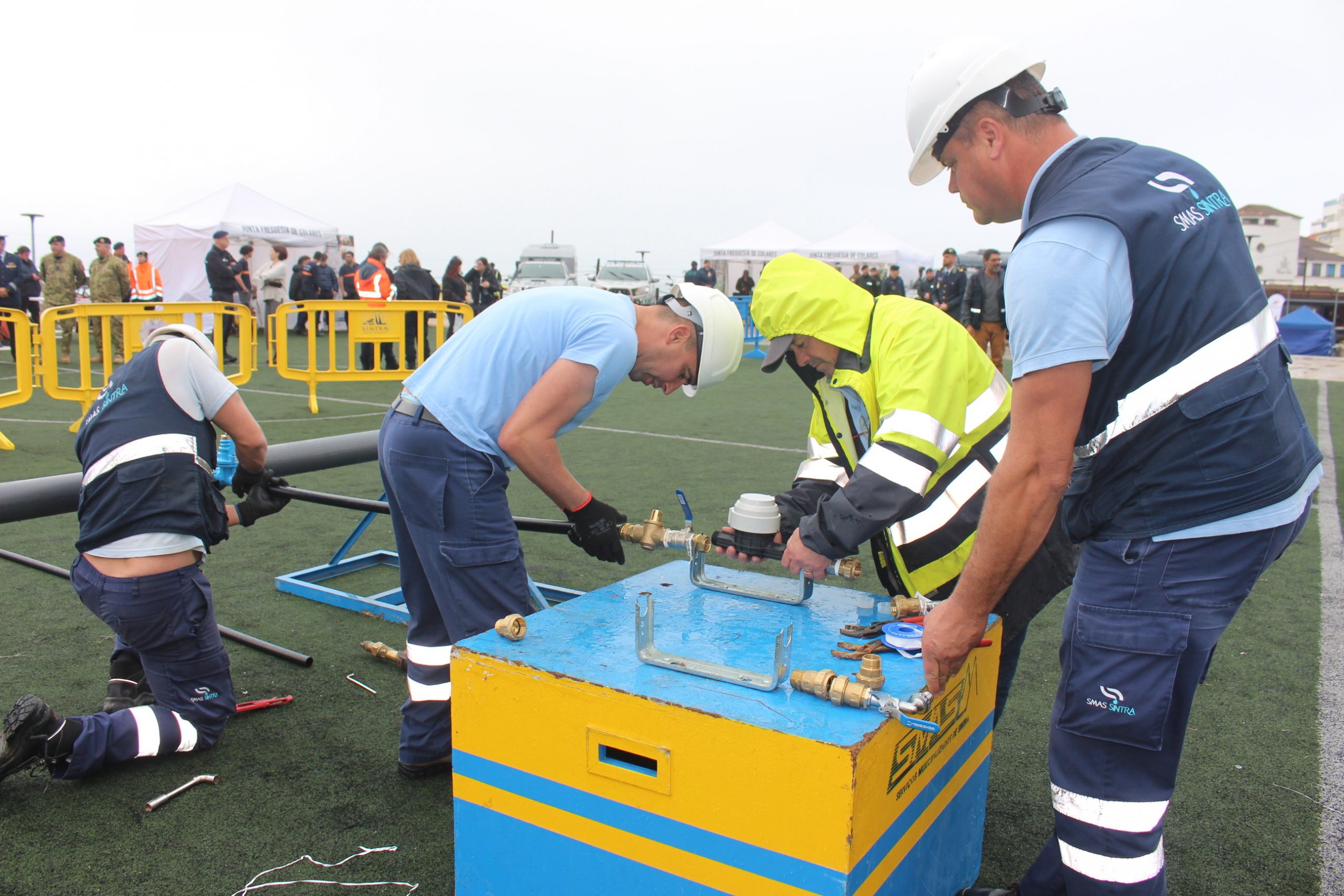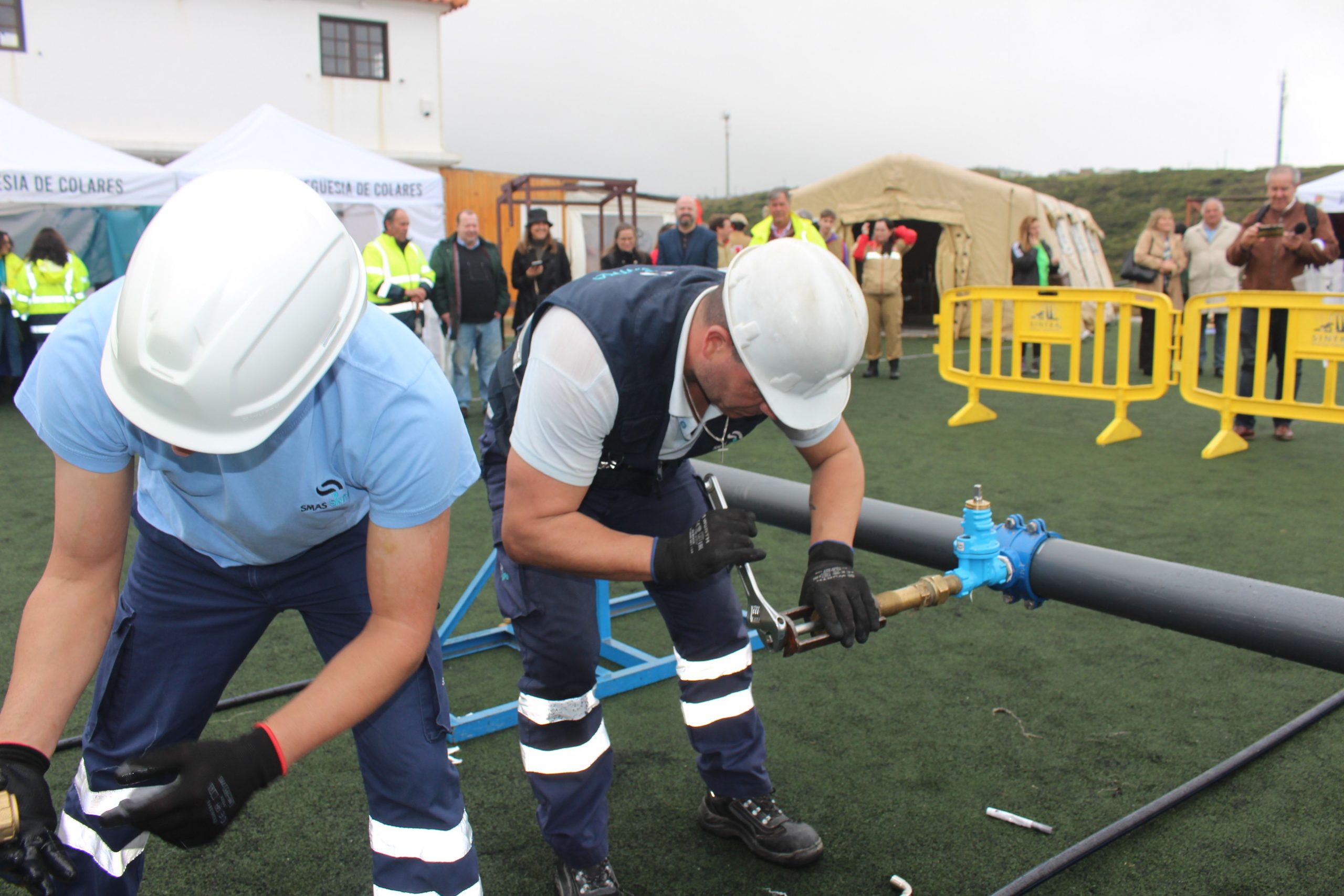 Apesar das condições meteorológicas adversas, os SMAS de Sintra promoveram uma demonstração de atividades operacionais de instalação de ramais de abastecimento de água e contadores. Recorde-se que os SMAS de Sintra conquistaram, em novembro de 2023, os títulos de campeão e vice-campeão no Campeonato Nacional de Montagem de Ramais em Carga, o Pipe Contest, na última edição do Encontro Nacional de Entidades Gestoras de Água e Saneamento, que decorreu em Gondomar. Esta competição técnica com componente lúdica, que fomenta também a sã competitividade entre as entidades gestoras, consiste na montagem de um ramal, no mais curto espaço de tempo possível, a partir de uma conduta de distribuição, a funcionar sob uma determinada pressão.