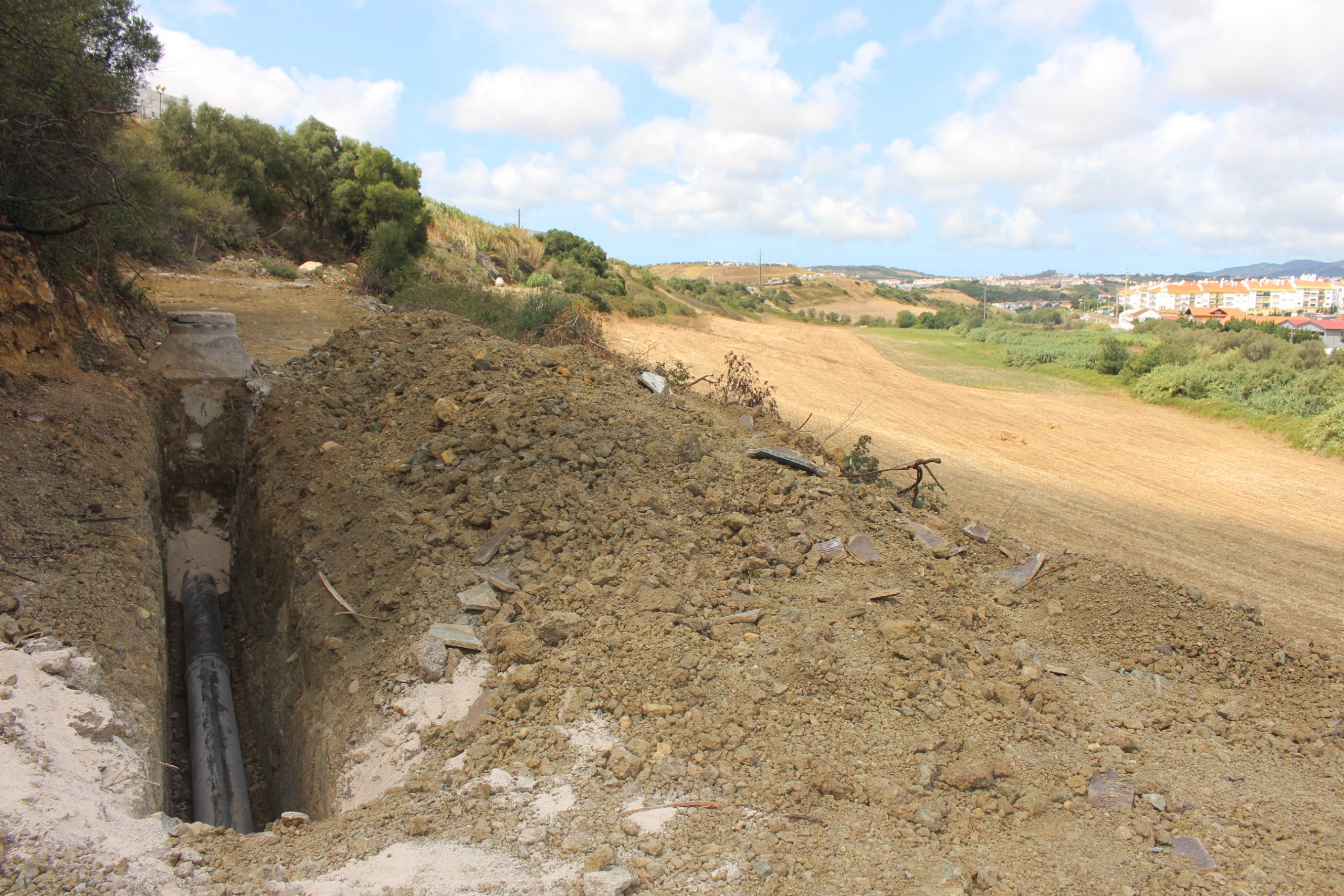 Esta intervenção resultou do colapso da tubagem instalada, ainda em grés, um material cerâmico que colapsou e provocou escorrências de águas residuais ao longo do talude. Após diagnóstico desta situação, foi detetada a necessidade de efetuar uma substituição mais extensa do troço do coletor, em mais de 300 metros, com a instalação de tubagens em PVC (Policloreto de vinila).