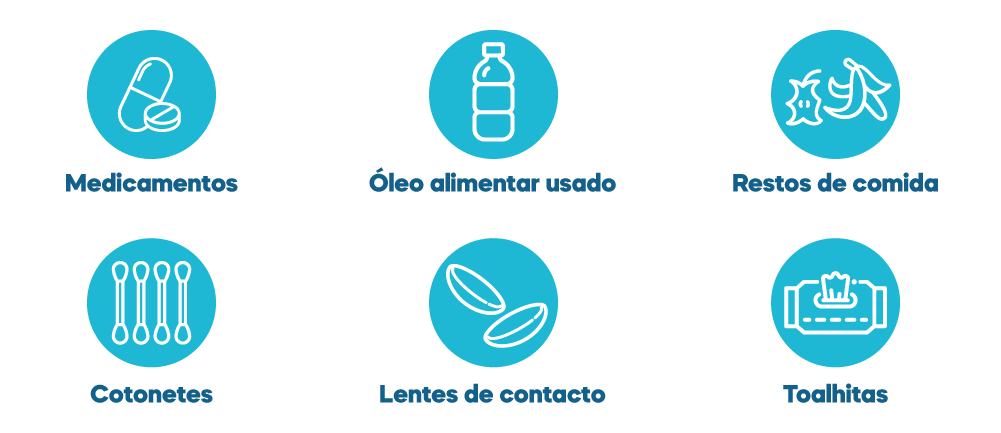 O problema dos resíduos indevidos como óleos, cabelos, cotonetes, toalhitas, preservativos, beatas, pensos higiénicos, fraldas, entre outros: